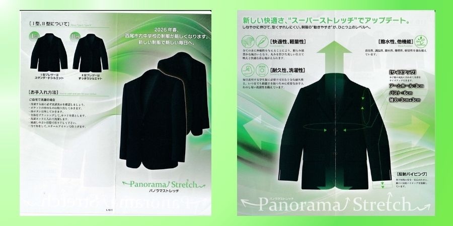 西尾市内中学校制服 取り扱っております 2026年度から西尾市内の中学校の制服がブレザーに統一されました。 当店も制服を取り扱っております 当店取り扱いのブレザーはパノラマストレッチで動きやすい! また、成長に合わせて各部をサイスアップできます 自宅でお手入れのしやすい洗濯も可能 Ⅰ型、Ⅱ型、取り揃えております